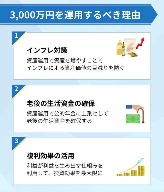 ここでは、3,000万円を運用するべき3つの理由を紹介する。