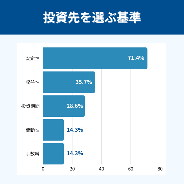 「安定性(リスク)」を重視する人が最も多く、約7割の人が回答していた。