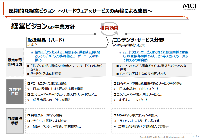 さらには、ハードウェアメーカーとしてソフトやコンテンツ領域にも進出することを将来的には想定しています。