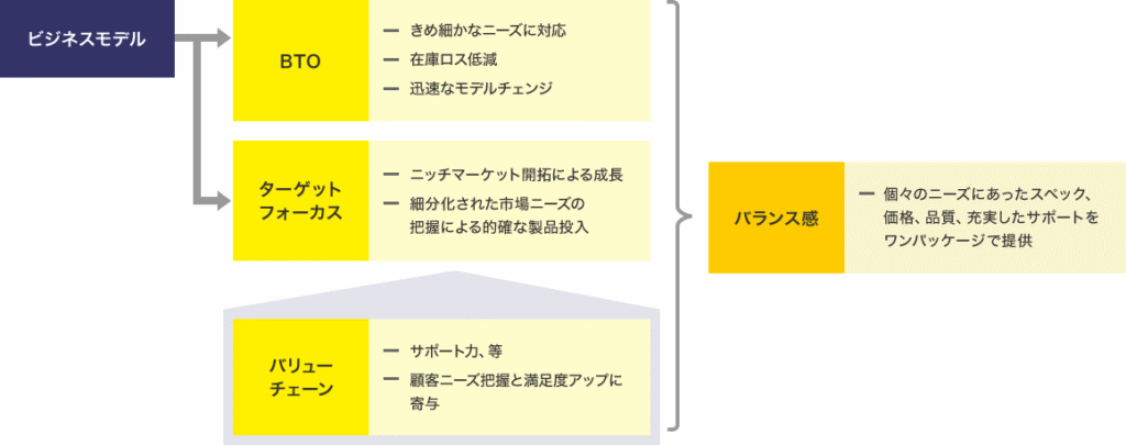 ここまでの高水準でアフターサポートを展開しているメーカーは他にはありません。パソコンがコモディティ化している今日は、もはや価格競争力やブランド力といった単一の力に頼ってモノを売る時代ではなくなりました。我々は価格競争力、クオリティ、アフターサポートの3つの総合力をもって勝負しています。
