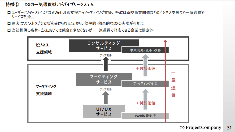 当社の強みは、これら3つのサービスを一気通貫で支援している点にあります。