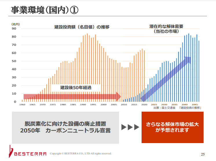 国全体で脱炭素化へとシフトしているため、解体市場にはかなりの成長性があります。