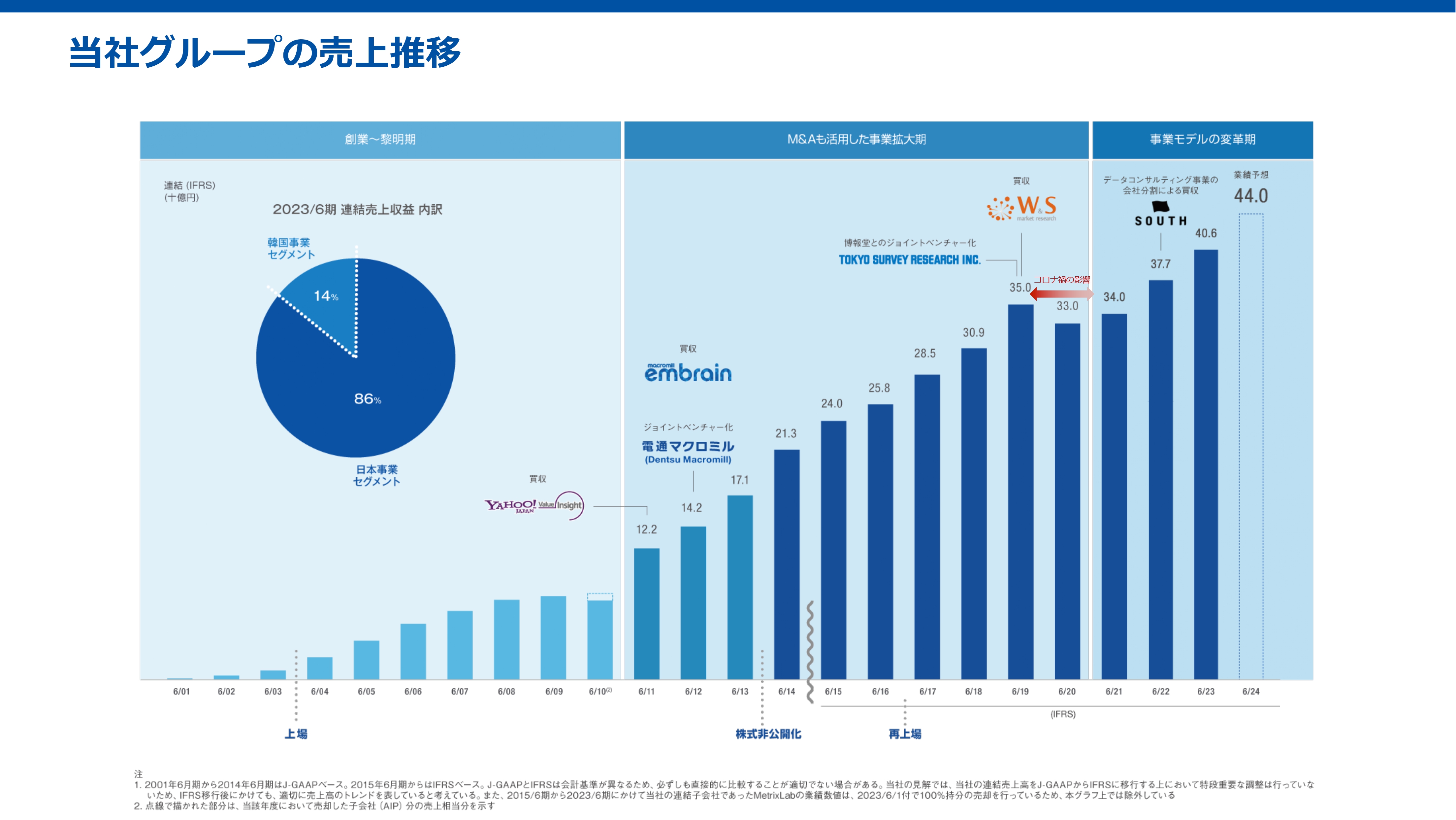 また、デジタルを活用した新たなソリューション開発にも注力し、グローバル展開とデジタルリサーチの拡大を成長ドライバーに、2017年3月に東証一部(現 東証プライム)に再上場を果たしました。