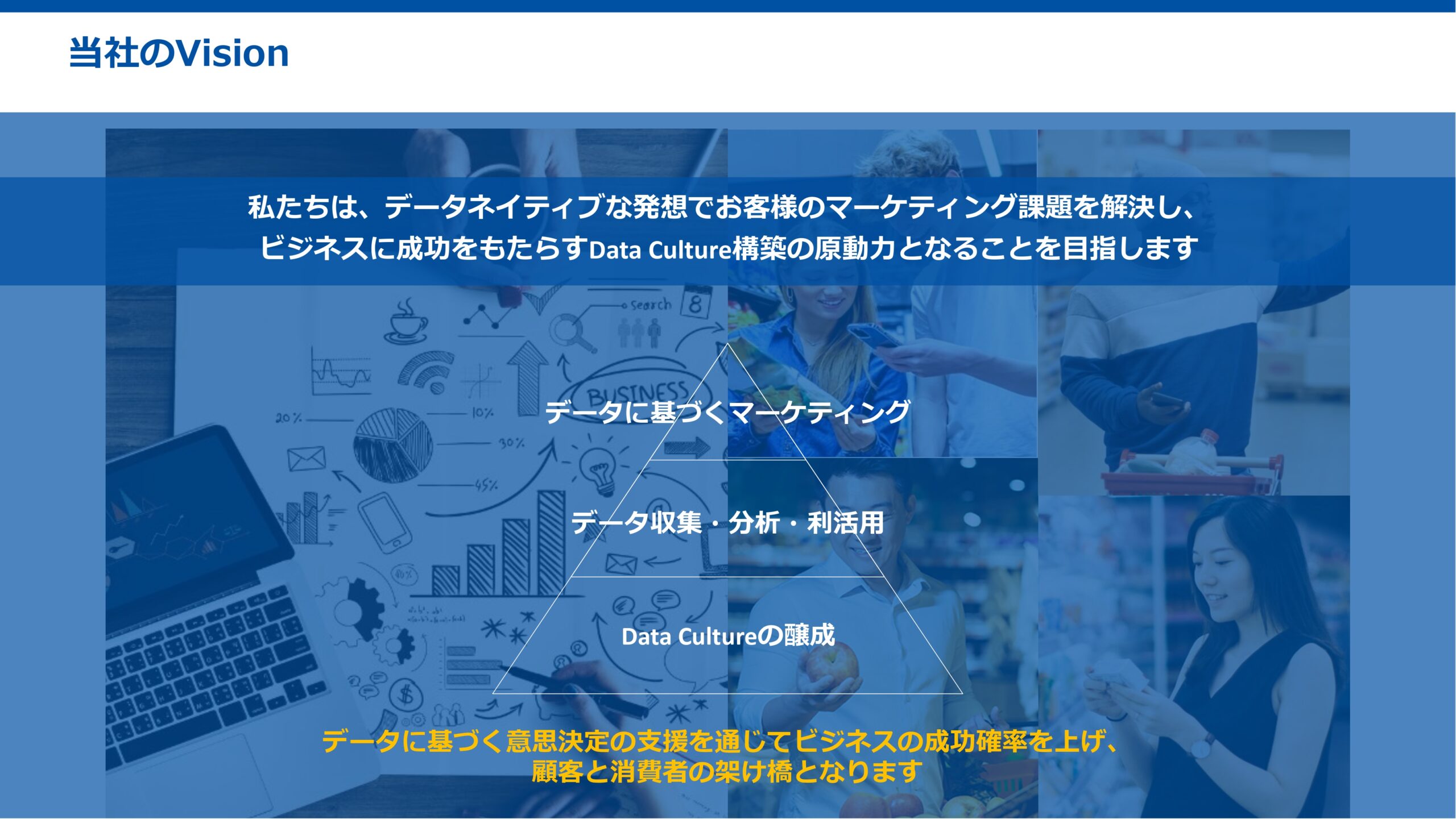 さらに、近年は単なるデータ提供のみならず、コンサルティングや多様なソリューションを提供し、「総合マーケティング企業」として事業を展開しています。