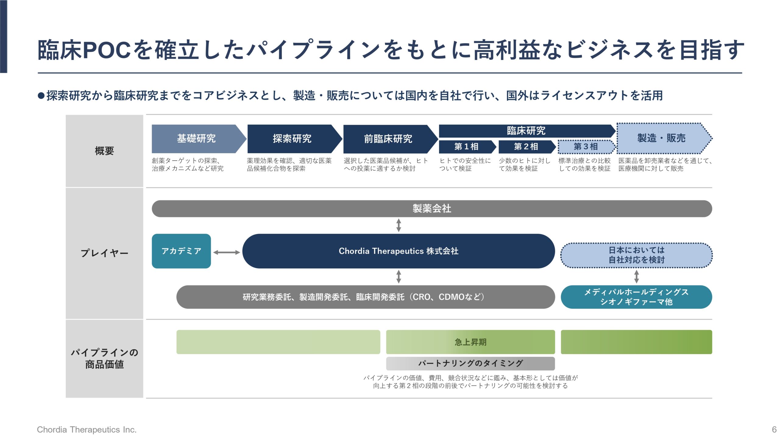 このように、当社は国内ではパートナーの力を借りながら自社で製造・販売を行い、国外ではライセンスアウトを目指し、製薬メーカーとしてのビジネスモデルを確立していきます。