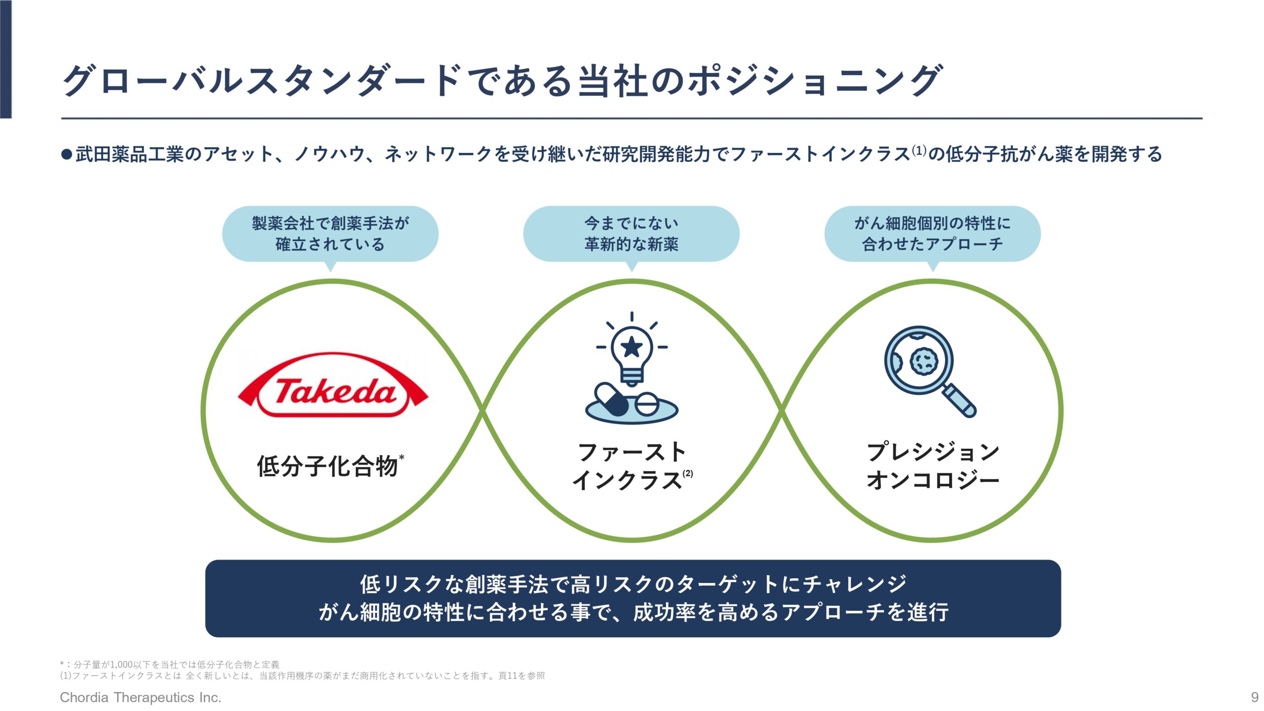 当社は武田薬品工業のアセット、ノウハウ、ネットワークを受け継いだ研究開発能力で、ファーストインクラスの低分子抗がん薬を開発しています。