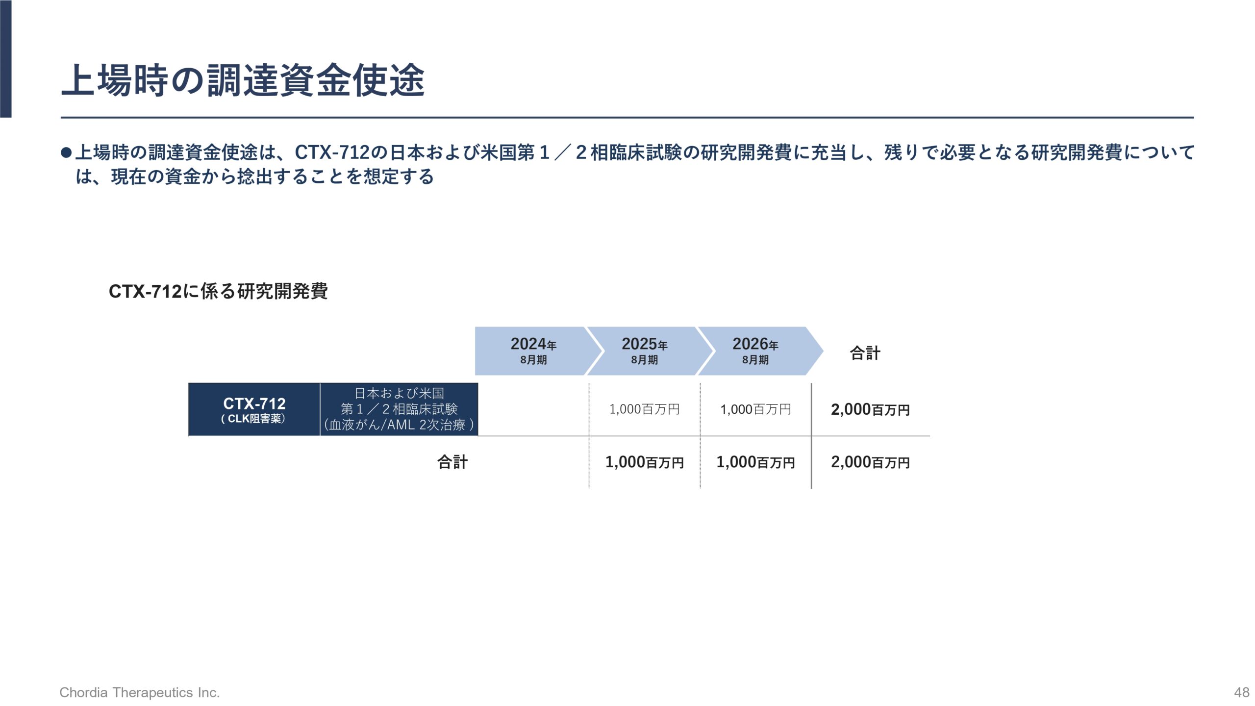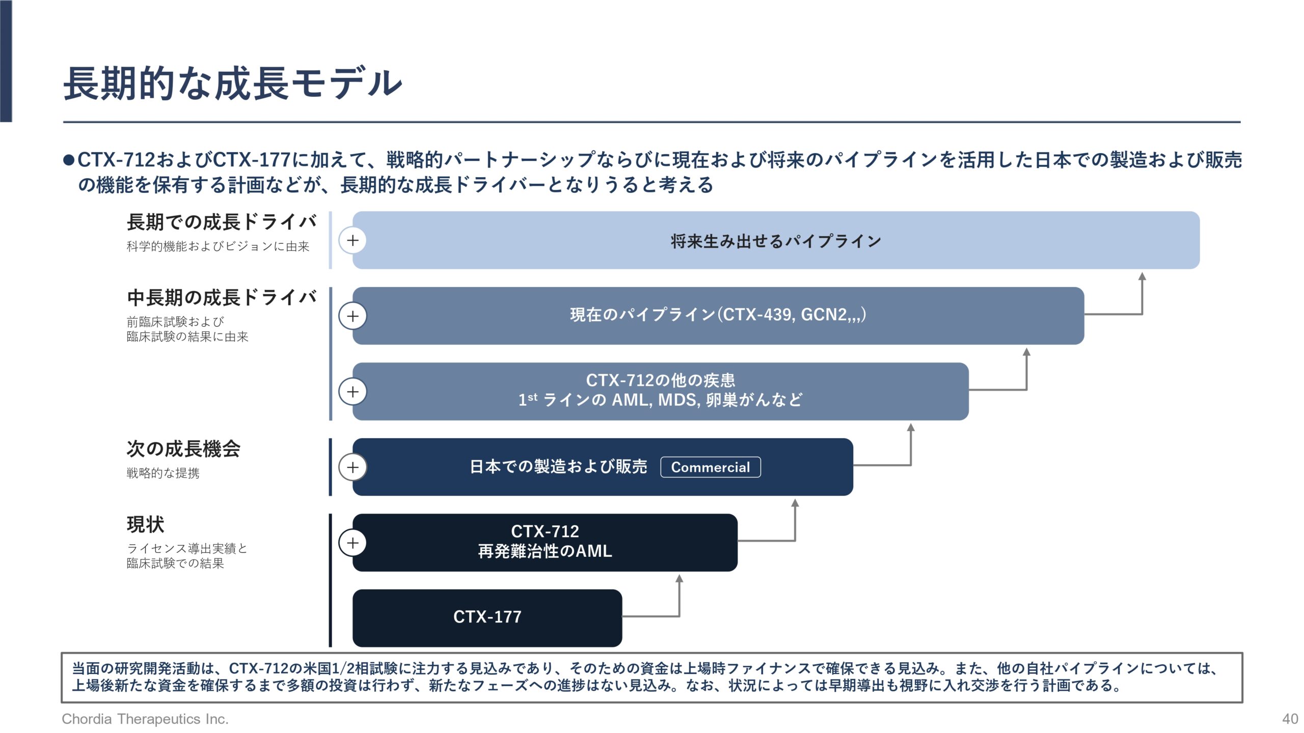当面の間はCTX-712の研究開発に注力し、上場時に得た資金で開発を進めていく想定です。