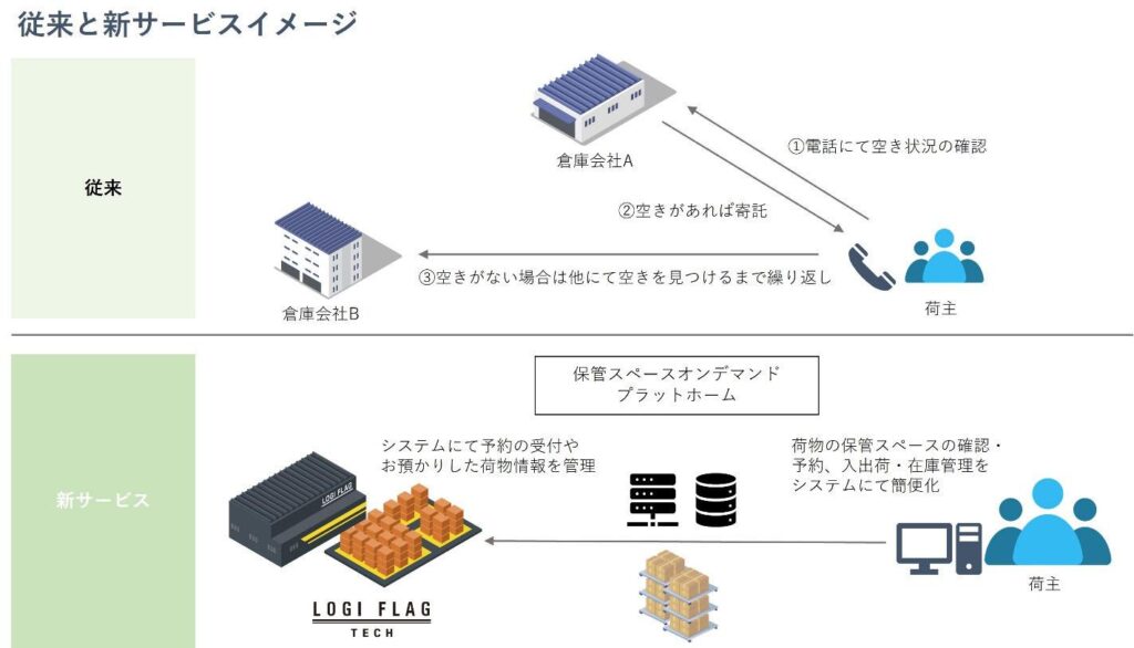 従来の倉庫業界では、荷物を預けたい荷主が倉庫を探す際の手続きがアナログで、荷物の預け入れや引き取りに関しても多くの無駄がありました。