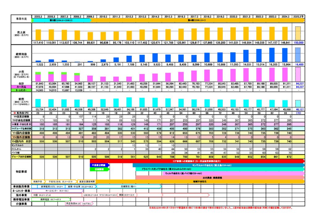 2024年3月現在イエローハットは740店舗まで増やし、カー用品専門店国内店舗数No.1となっています。