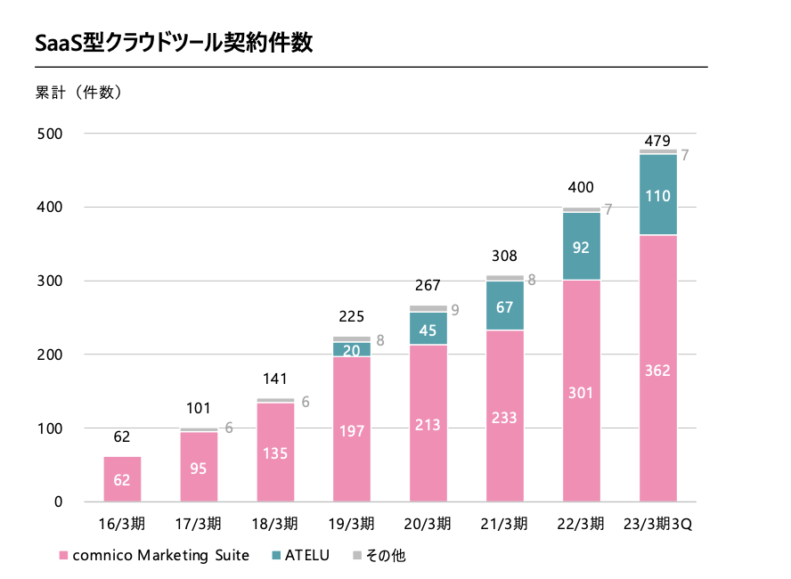 現在、SNS運用を効率化するツール「comnico Marketing Suite」とSNSキャンペーンツール「ATELU」をご提供しています。我々が利便性を感じるツールは他社さんも同じように便利だと感じていただけると考えており、事実、これらのサービスは好評をいただき、ご契約数が伸びています。
